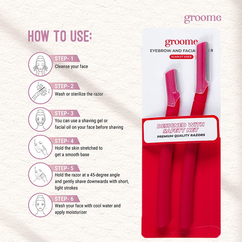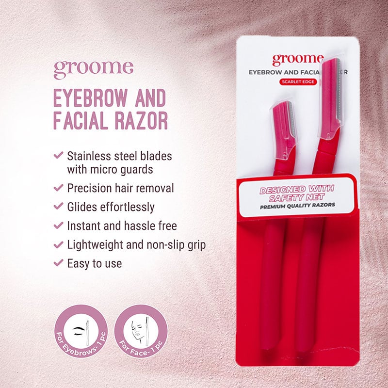 - Groome Eyebrow and Facial Razors are great multipurpose beauty tools that skillfully shape eyebrows.