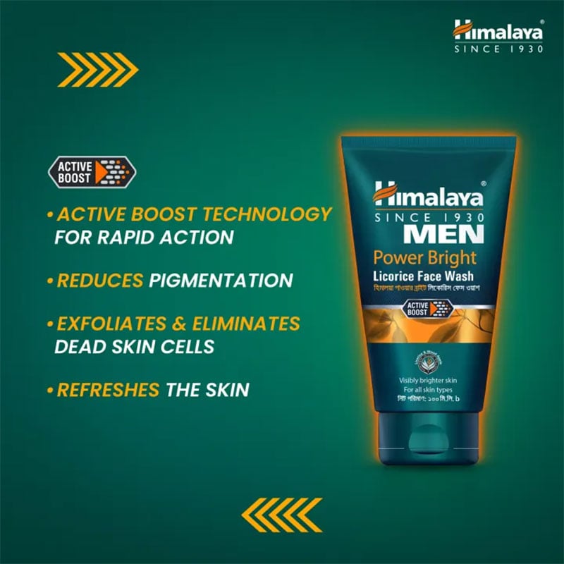 - Himalaya Men Power Glow Licorice Face Wash is a soap-free formula, that gently cleanses the face.