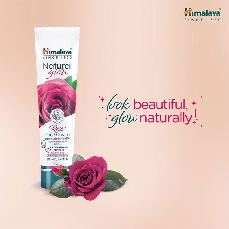 - Himalaya Natural Glow Rose Face Cream is enriched with a Phyto-Vitamin Complex containing a unique blend of pure Rose and Vitamin E, which nourishes and revitalizes dull skin.