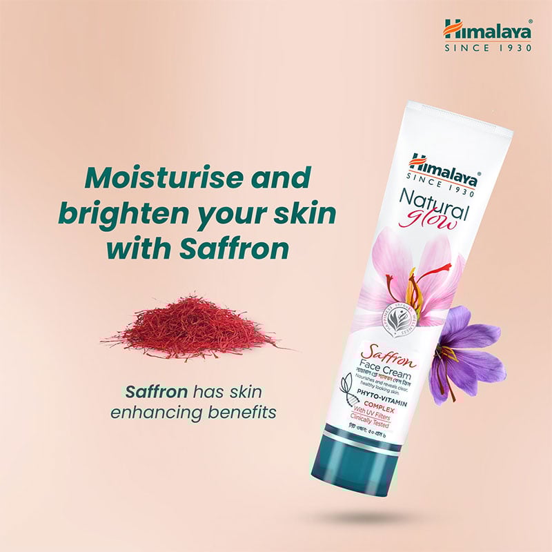 - Himalaya Natural Glow Saffron Face Cream is enriched with a Phyto-Vitamin Complex containing a unique blend of pure Kesar, Alfalfa and Vitamin E which improves skin clarity and provides a healthy even tone.
