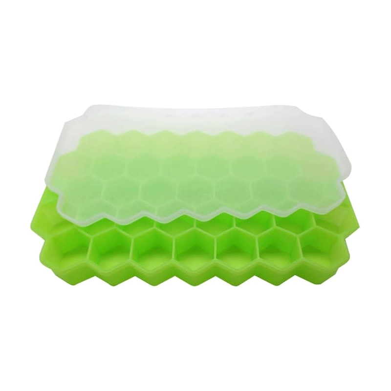 Honeycomb Pattern Ice Cube Trays With Cover - Bright Green
