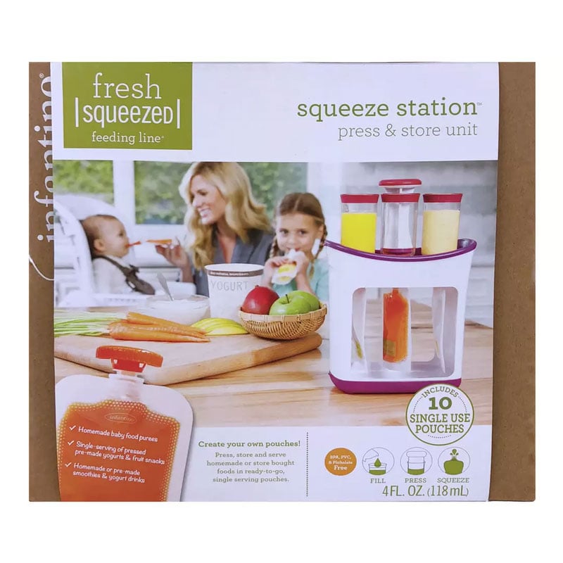 - Make and store your own convenient food pouches with the Infantino Squeeze Station.