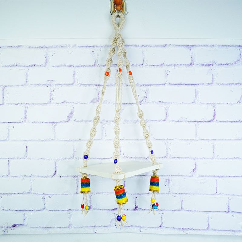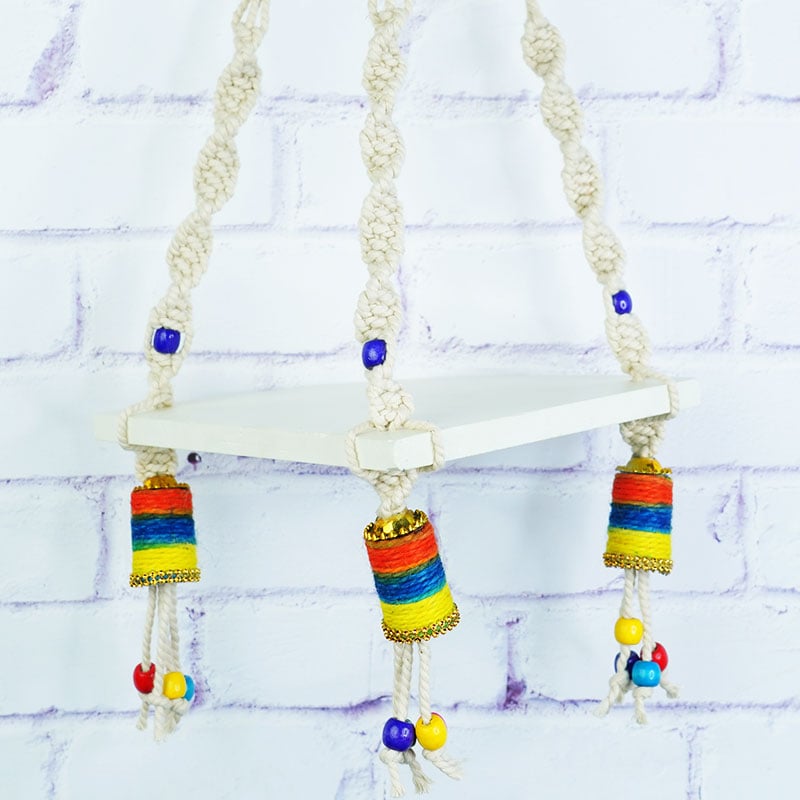 - Solid wood board with strong jute strings, guarantees it has enough weight capacity for storing and displaying small items. The distance between the wood boards can be adjusted.