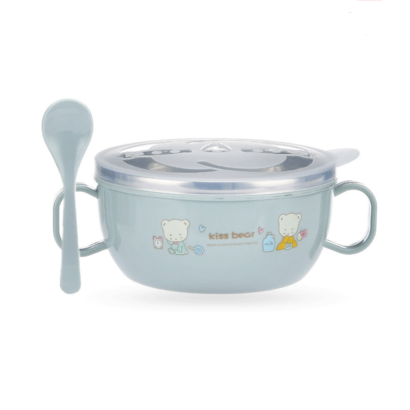 Kiss Bear Stainless Steel Insulated Baby Feeding Bowl Set - Payne Gray