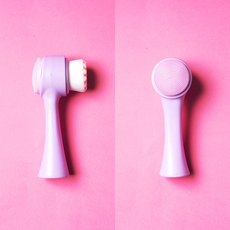 - Use the soft side of the brush to work the cleanser into your face and remove excess makeup and oils.