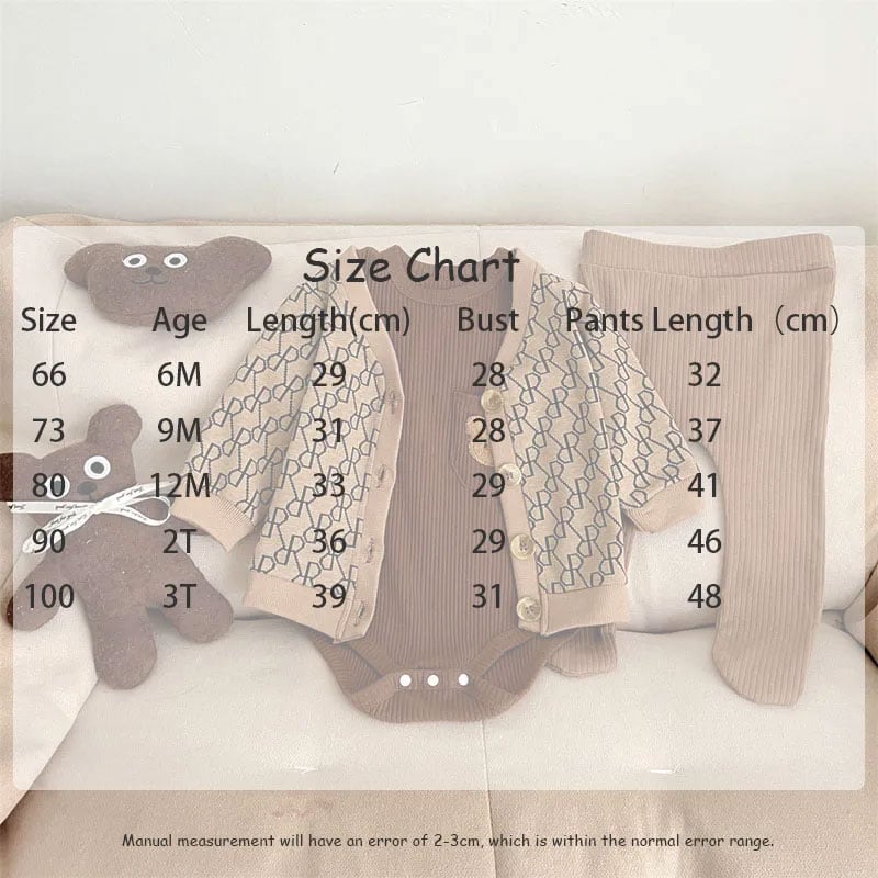 Korean Style Baby Cotton Romper Three Piece Set Size 90 - Brown
