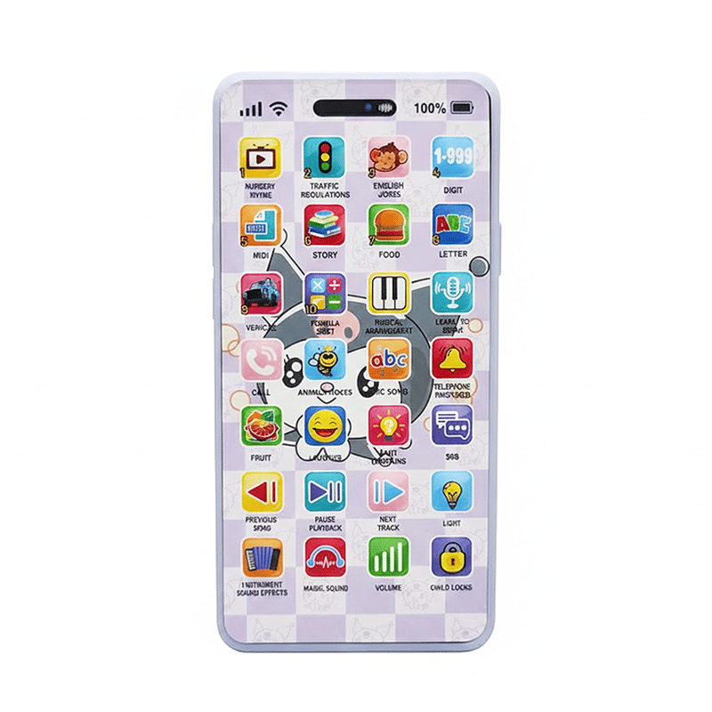 - Features a colorful touchscreen-style display with 20+ icons for nursery rhymes, stories, and games.