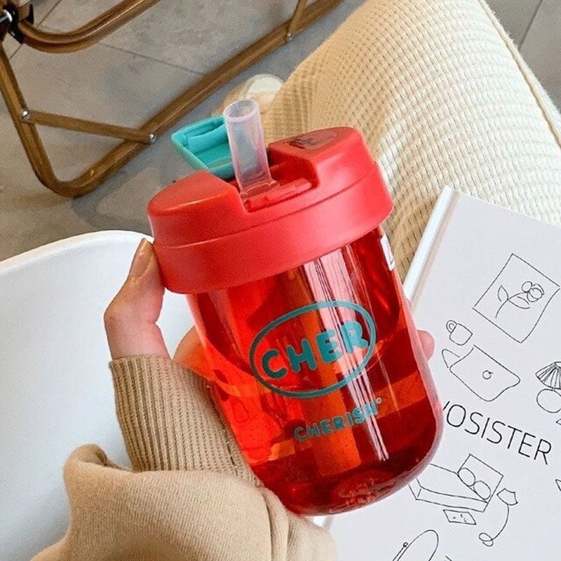 Large Capacity Anti-fade Pretty Wide Straw Cup 300ml - Red
