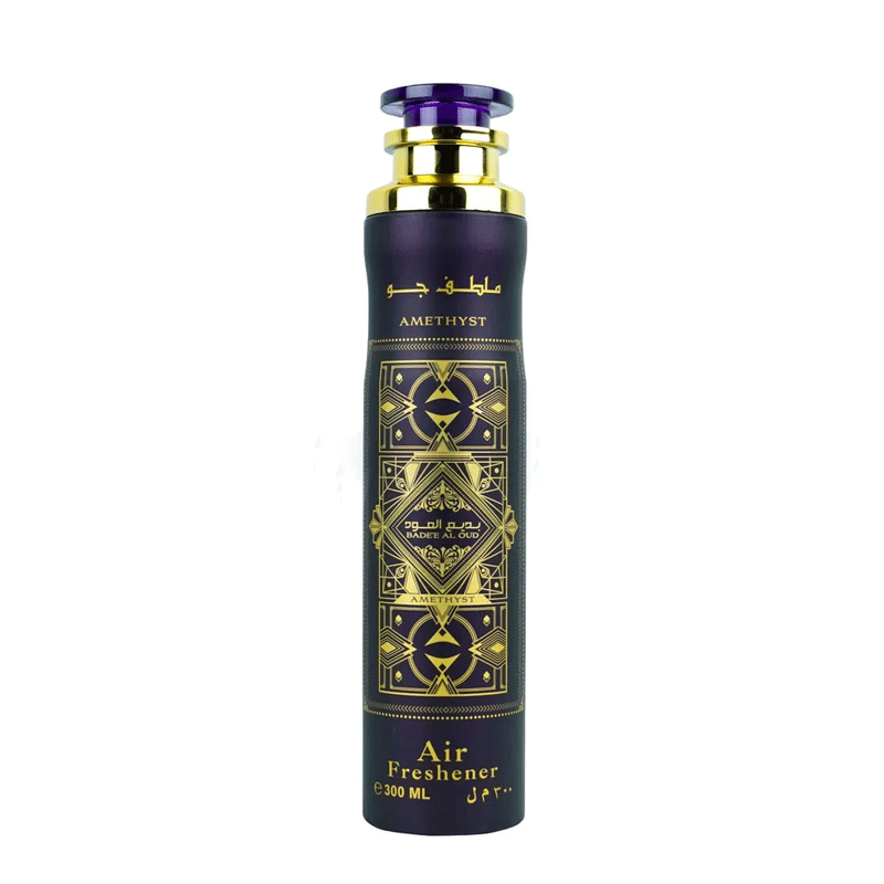 - Lattafa Badee al Oud Amethyst Air Freshener 300ml is a premium fragrance spray designed to enrich indoor spaces with a captivating blend of floral and oud notes.