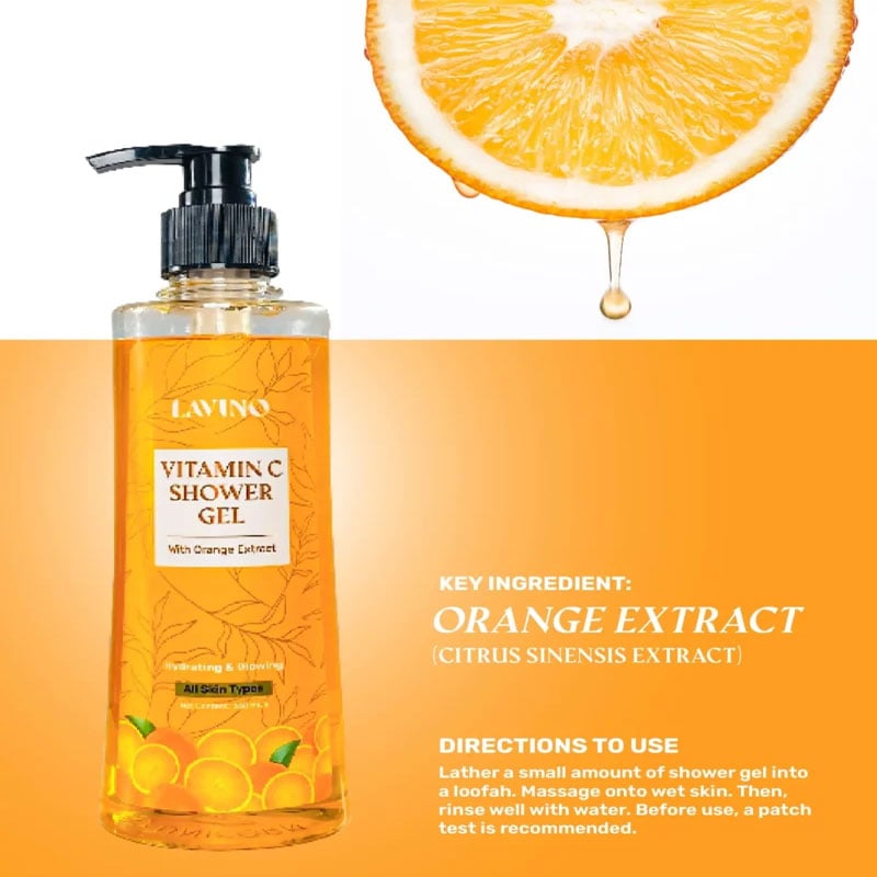 - Lavino Vitamin C Shower Gel isn’t just a cleanser, it’s a citrus-infused awakening for your skin.