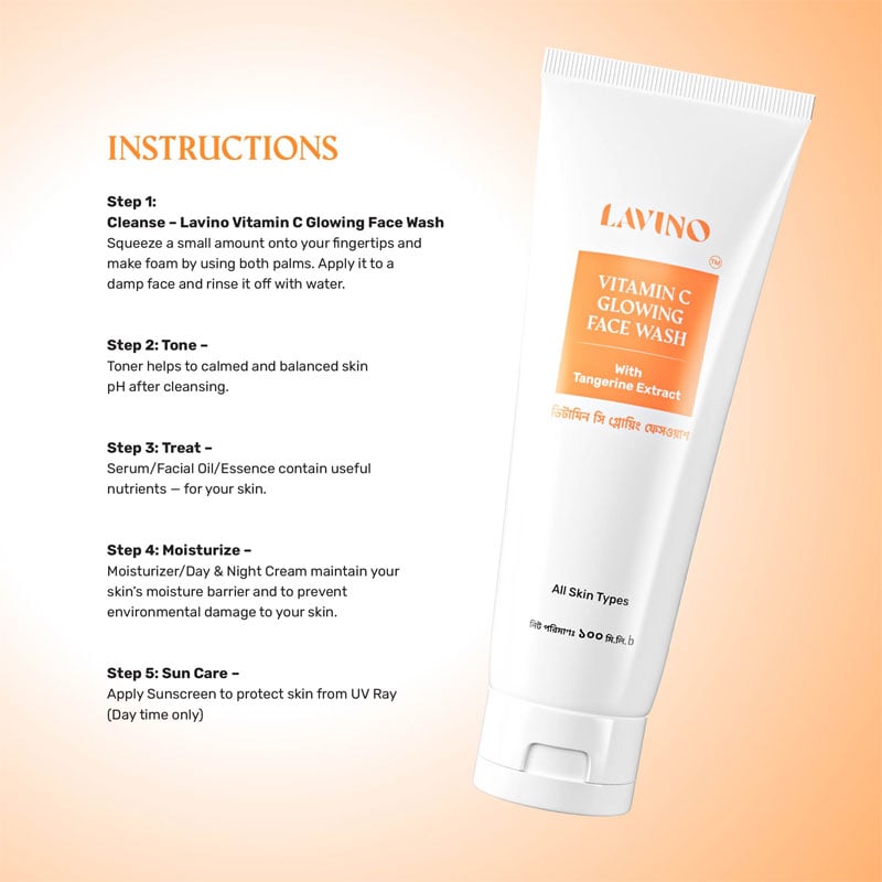 - Lavino Vitamin C Glowing Face Wash is formulated with active Vitamin C, a powerful antioxidant that brightens, nourishes, and protects your skin while giving it a deep and thorough cleanse.