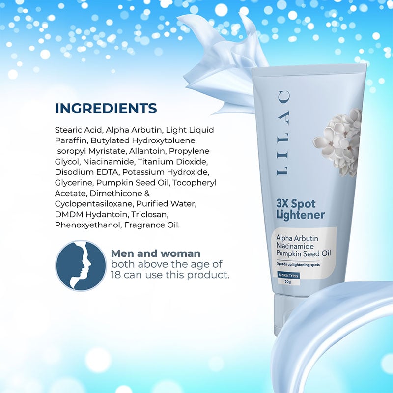 - Lilac 3X Spot Lightener is made from naturally derived Alpha Arbutin, Niacinamide and Pumpkin seed oil that delivers the most effective brightening, moisturizing and firming effect to your skin.