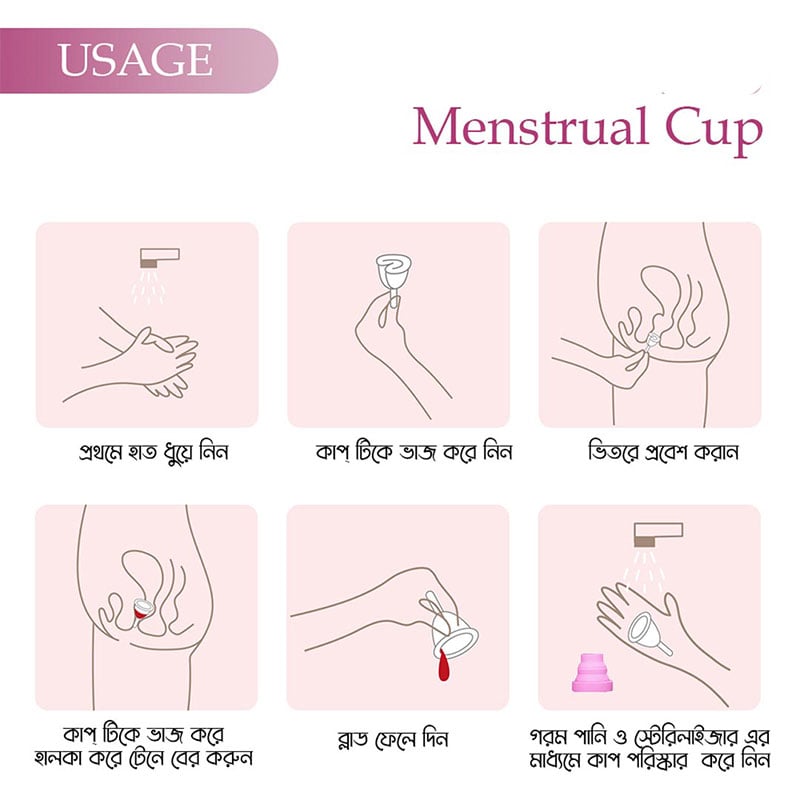 - The menstrual cup is suitable for heavy and light bleeding and can be used up to 12 hours a day without changing.