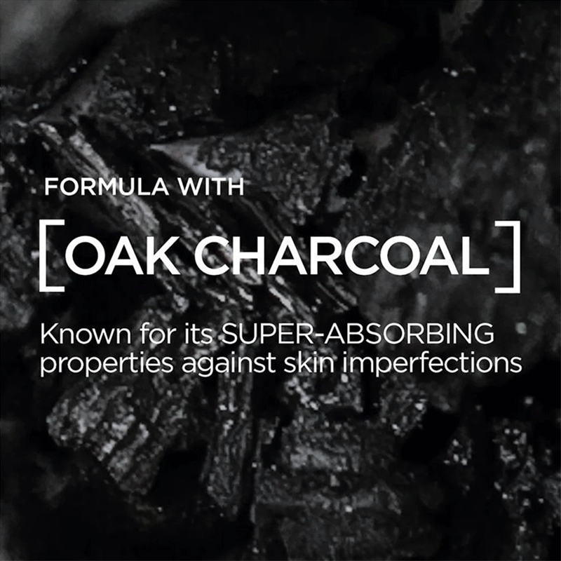 - Contains Purifying Carbon (charcoal) to absorb impurities and excess oil, along with cleansing agents to remove dirt and unclog pores.
