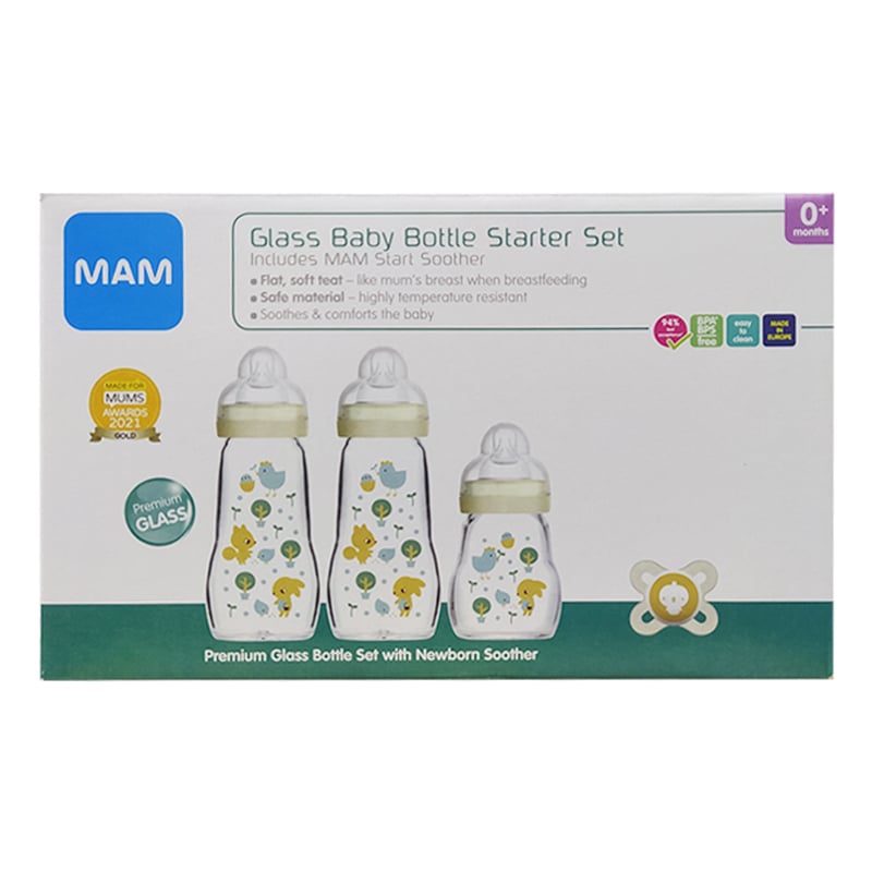 MAM Premium Glass Baby Bottle Starter Set with Newborn Soother (0702)