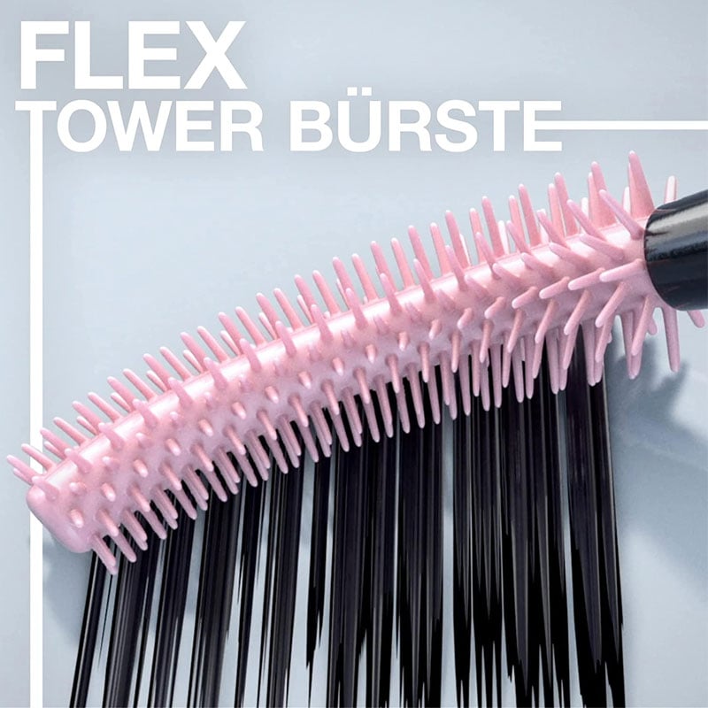 - Exclusive Flex Tower mascara brush bends to volumize and extend every single lash from root to tip.