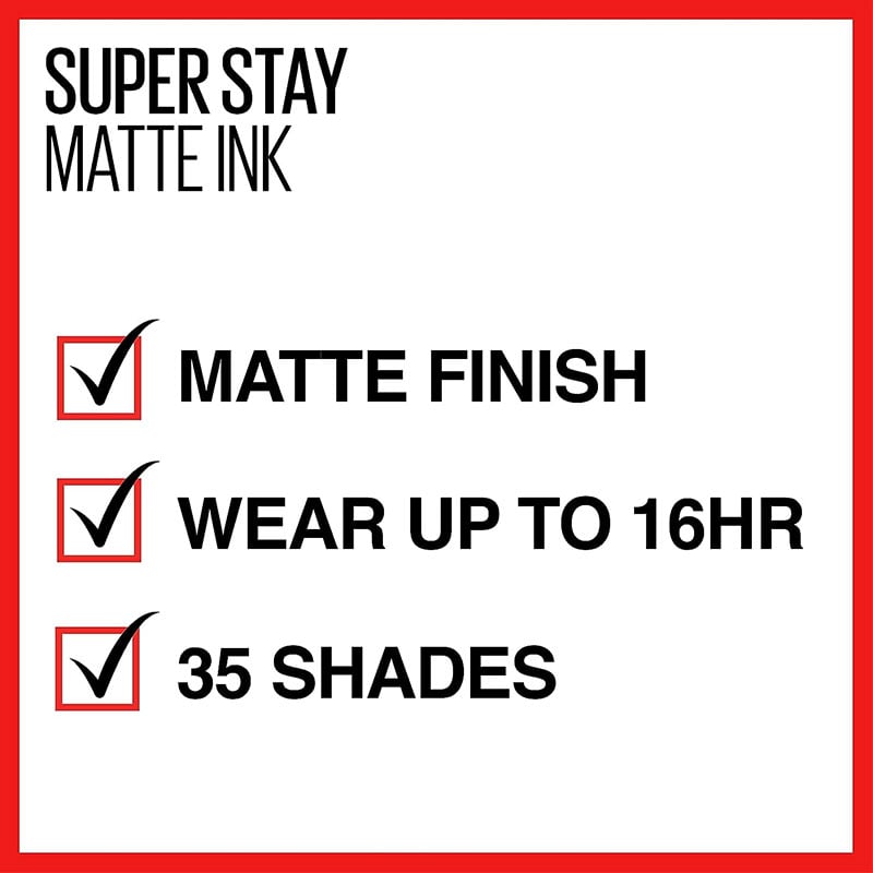 - Ink your lips in up to 16 hours of saturated matte with Maybelline New York’s Super Stay Matte Ink Liquid Lipstick!