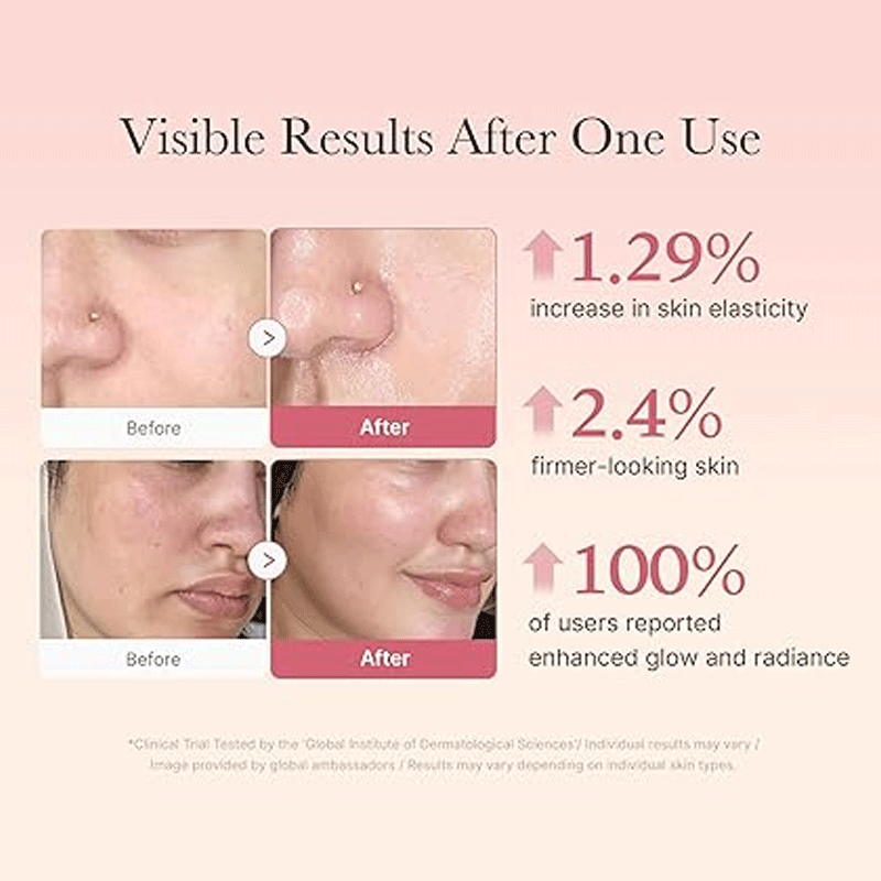 - DERMATOLOGIST TESTED — Skin firmness improved by 1.793% and sagging skin by 2.488% after 24 hours. *The above information pertains only to the characters of the raw materials *Clinical Trial Tested by the Global Dermatological Research Institute.' / Results may vary depending on individual skin types.