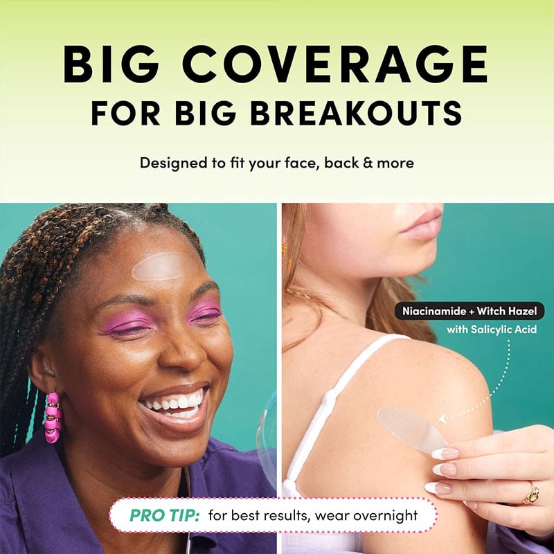 - This pack of 10 extra-large hydrocolloid patches is designed to cover and treat bigger problem areas, helping to draw out impurities while shielding the skin from dirt and bacteria.