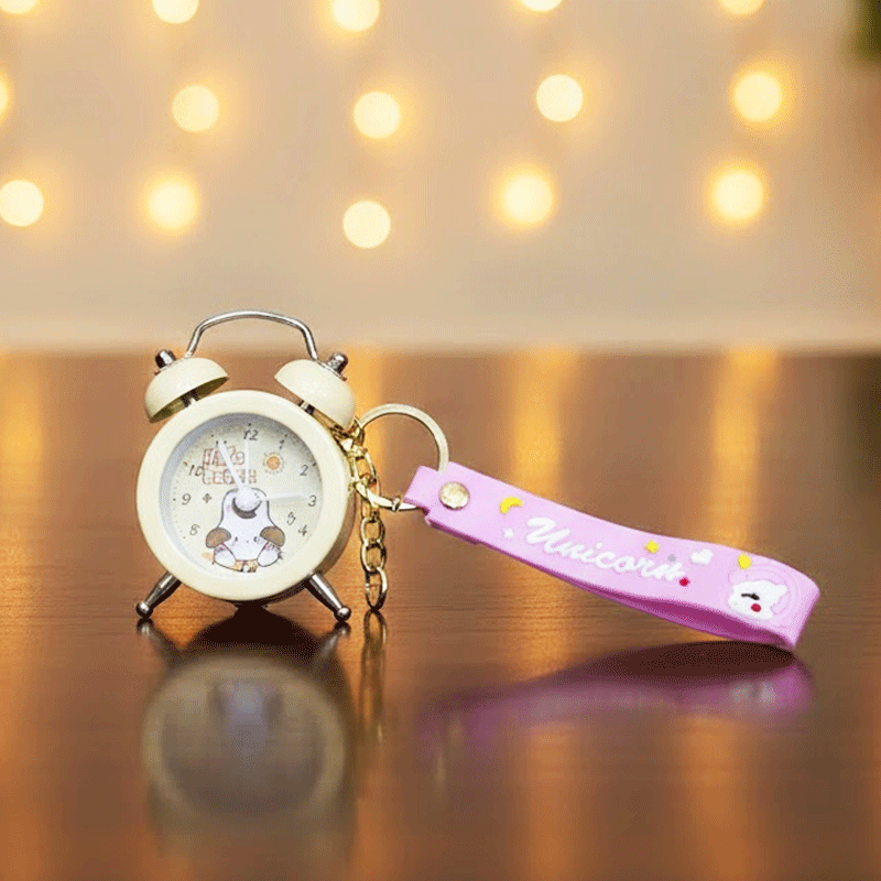 Mini Alarm Clock Key Ring - Cream