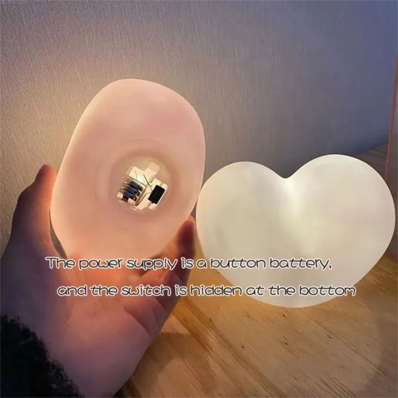 - This is a Mini LED Lamp designed for aesthetic or night light use, featuring a charming heart shape and an outer casing that glows softly when illuminated.