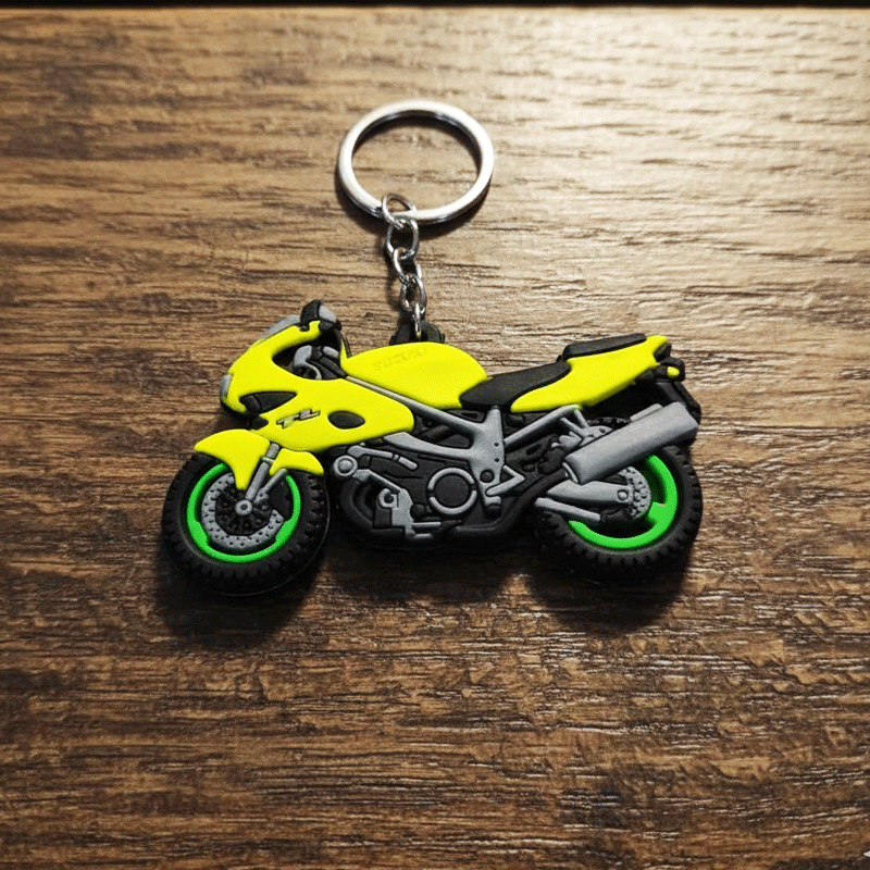 Motorcycle Rubber Silicone Keychain - Bright Green