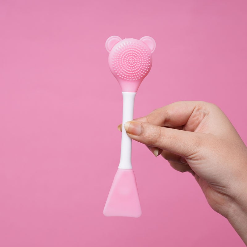 Multi-Functional Silicone 2-in-1 Face Scrubber & Spatula Stick - Baby Pink