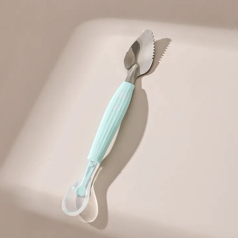 - Toddler Utensils: Baby double head baby fruit scraper spoon is portable and lightweight, baby scraping spoon easy to carry,spoon with sharp edge.