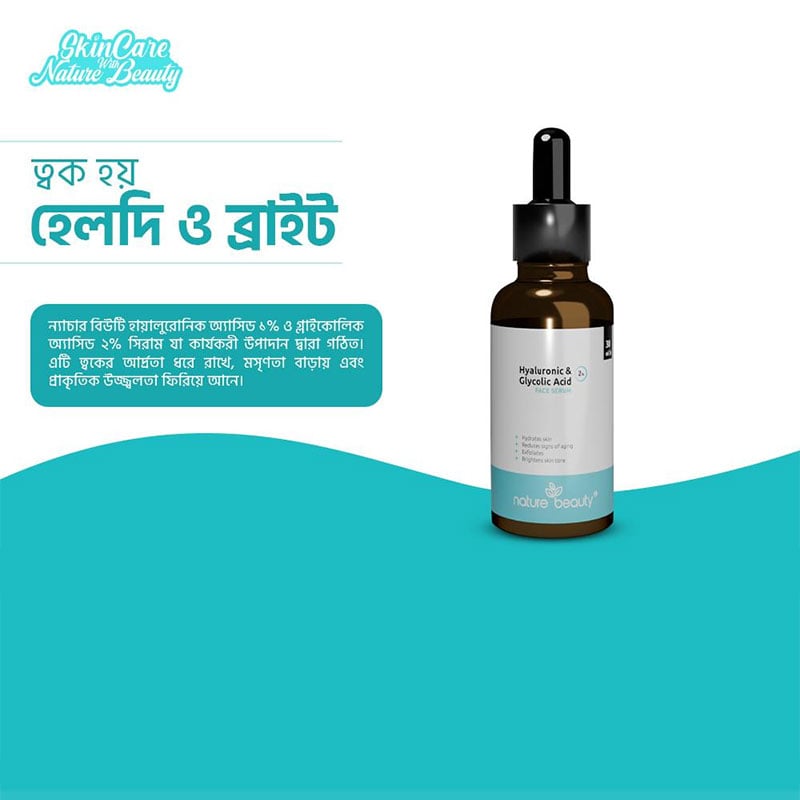 - Nature Beauty Hyaluronic Acid & 2% Glycolic Acid Serum, a powerful combination that gently restrains moisture in the skin.