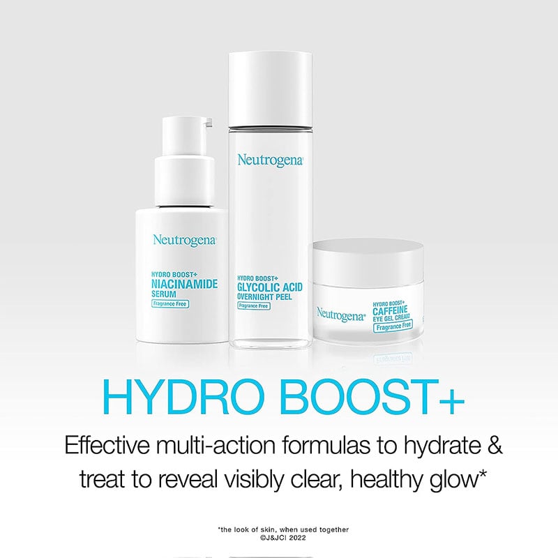 - Hydrate skin while improving uneven, dull skin tone with Neutrogena Hydro Boost+ Niacinamide Serum with 10% Niacinamide and Hyaluronic Acid.
