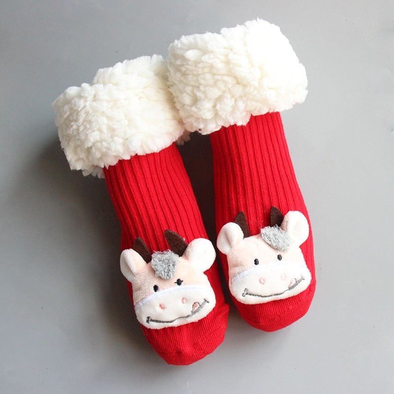 Newborn Baby Cartoon Plush Velvet Mid Tube Socks - Red (240056)