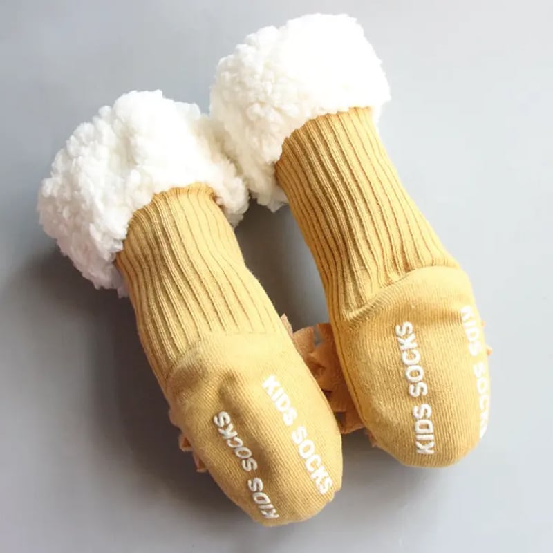 Newborn Baby Cartoon Plush Velvet Mid Tube Socks - Yellow (240057)