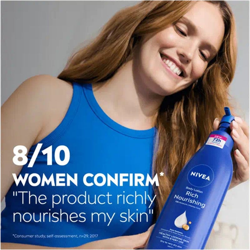 Nivea Rich Nourishing Complete 72h Moisture Body Lotion For Dry To Very Dry Skin 400ml •