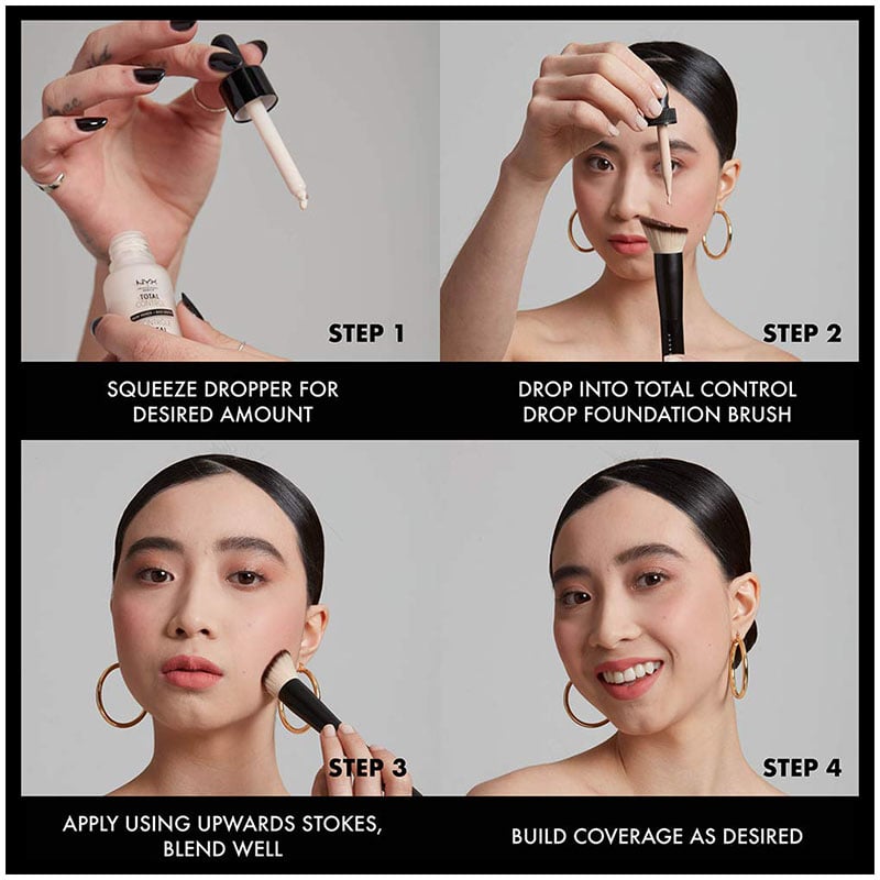 - Create a glowy finish by adding few drops of our Total Control Pro Drop Foundation Illuminator!