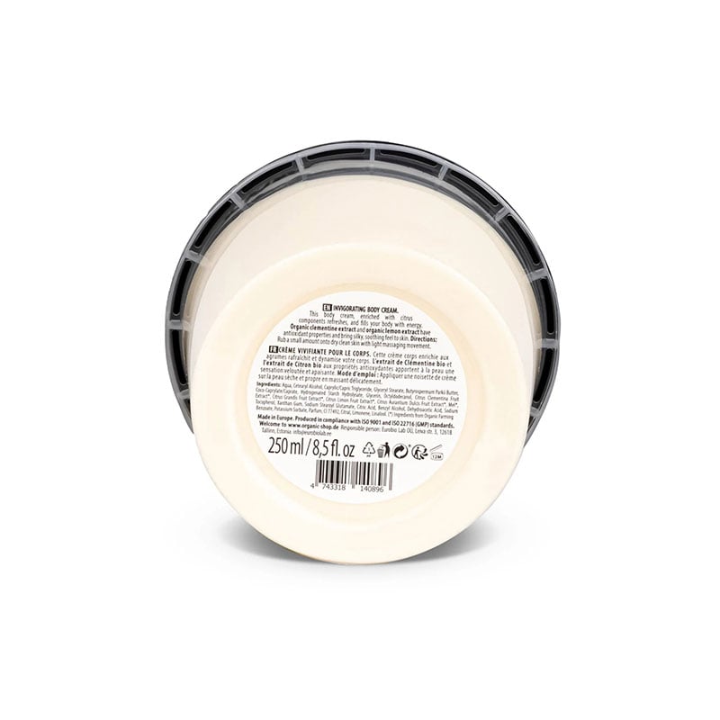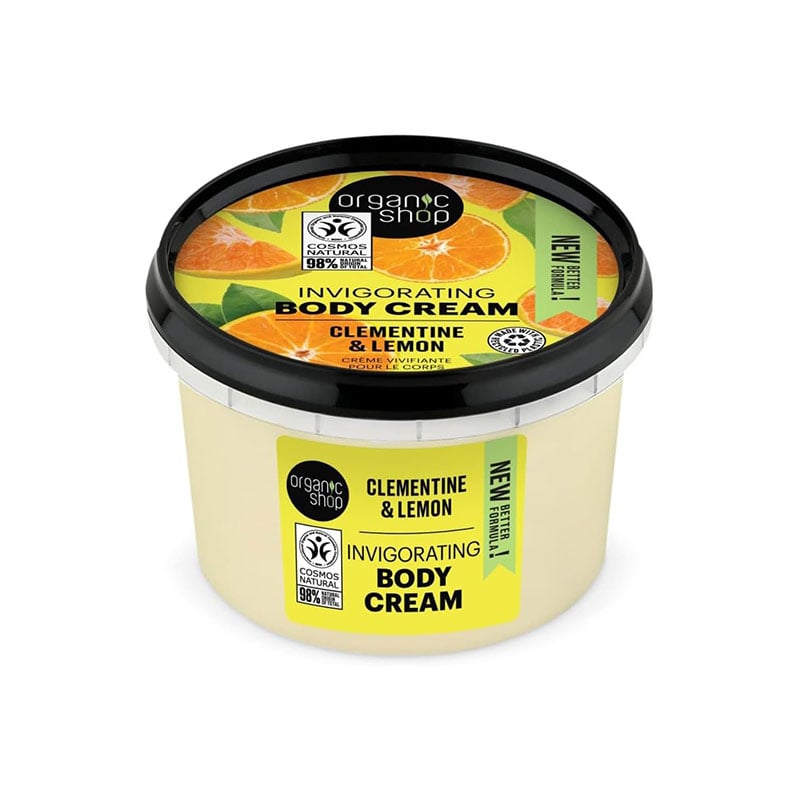 - Organic Shop Invigorating Body Cream with Organic extracts of Clementine & Lemon.