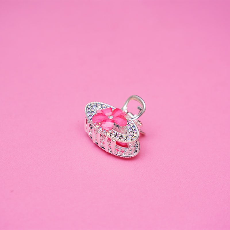 Oval Shape Rhinestone Hair Clip - Hot Pink