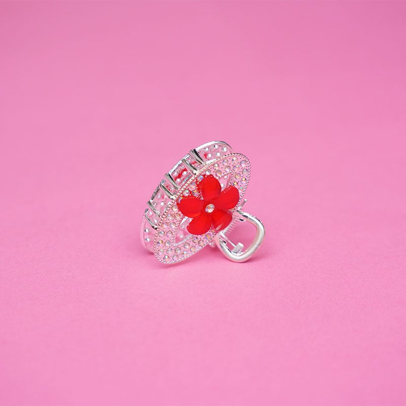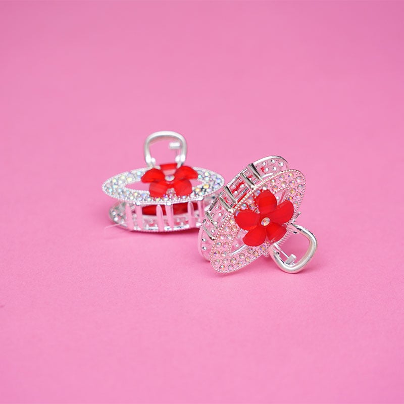 Oval Shape Rhinestone Hair Clip - Red