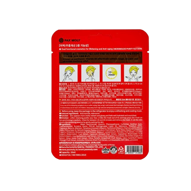 - Pax Moly Real Vitamin B5 Mask Pack 25ml is a Korean sheet mask designed to hydrate, soothe, and soften the skin.