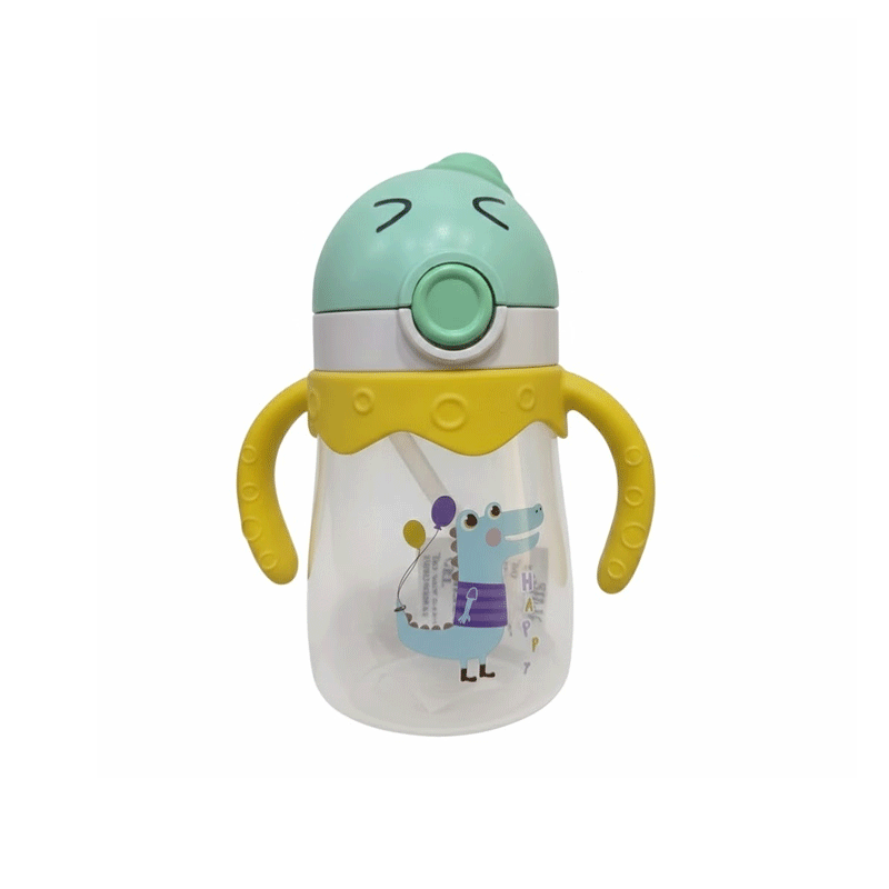Premium Kids Water Bottle Handle & Straw 350ml - Crocodiles