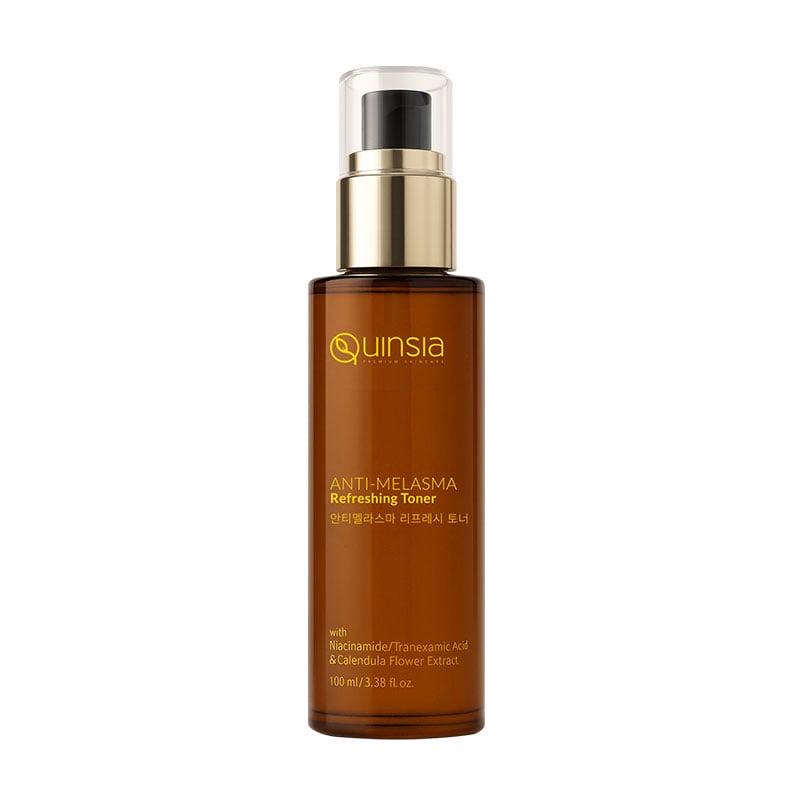 - Refresh and repair your skin with Quinsia Anti-Melasma Refreshing Toner- with Calendula Flower Extract.