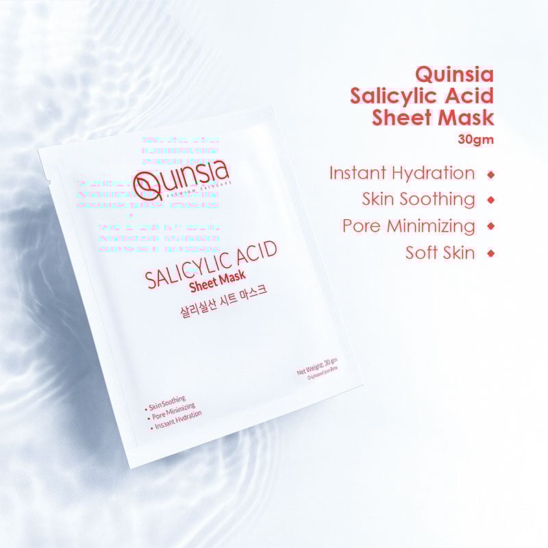 - Layer your skin with some extra hydration applying Quinsia Salicylic Acid Sheet Mask.