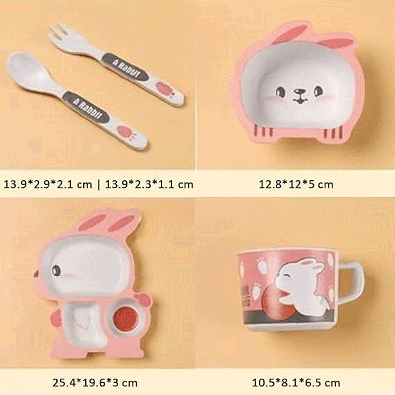 - Package Includes: 5 piece set of 1 x Plate, 1 x Bowl, 1 x Cup, 1 x Spoon and 1 x Fork.