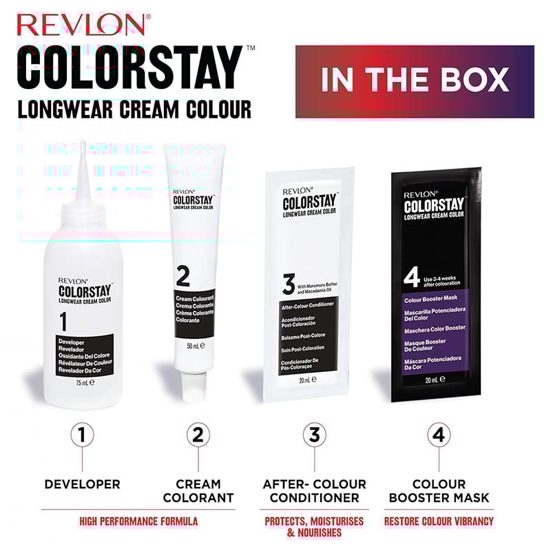 Colorstay Technology Delivers Long-Lasting Colour Results With 100% Grey Coverage For Vibrant, Rich And Looking Hair, For Weeks. With 100 Percent Natural Murumuru Butter And Macadamia Oil. Restore Vibrancy Just Like Day 1 With The Colour Booster Mask Which Revives Colour Just Like At Week 4. Up To 8 Weeks Of Rich, Vibrant Colour. Creamy, Non-Drip Formula For Easy Application. For All Bases And Hair Types. Vegan, Formula Without Adding Mineral Oil Or Silicones.