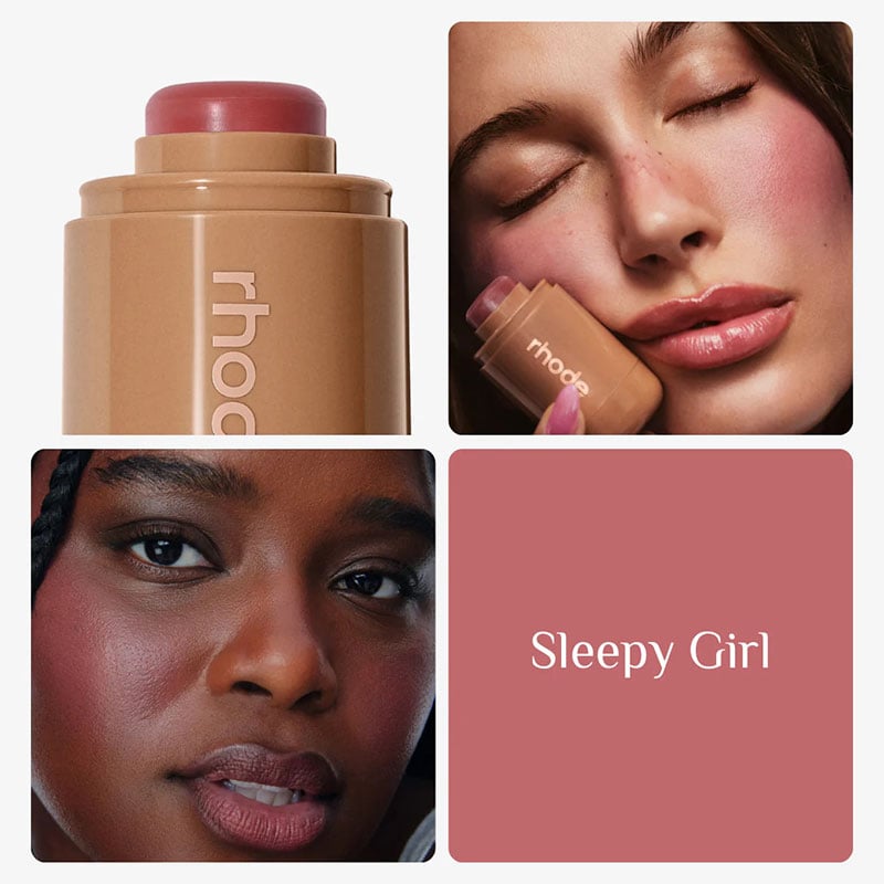 - The Pocket Blush Stick by Rhode by Hailey Bieber is a creamy blush that provides buildable color, giving you baby-soft cheeks.