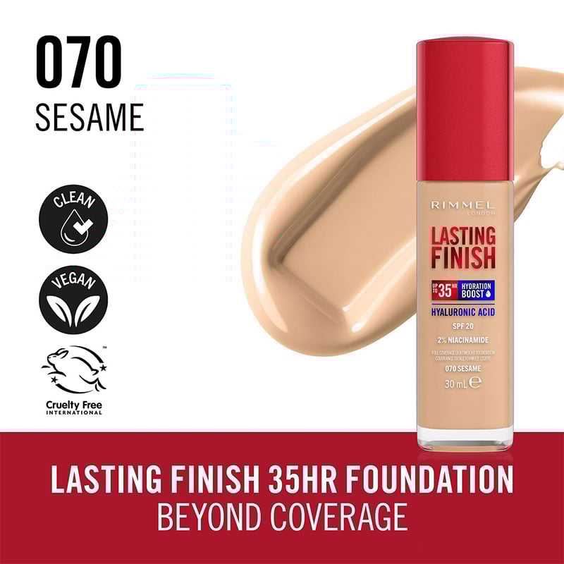 - Get unbeatable hydration and up to 35hr wear with Rimmel London Lasting Finish 35 Hour Foundation.