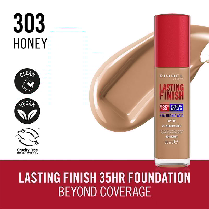 - Get unbeatable hydration and up to 35hr wear with Rimmel London Lasting Finish 35 Hour Foundation.