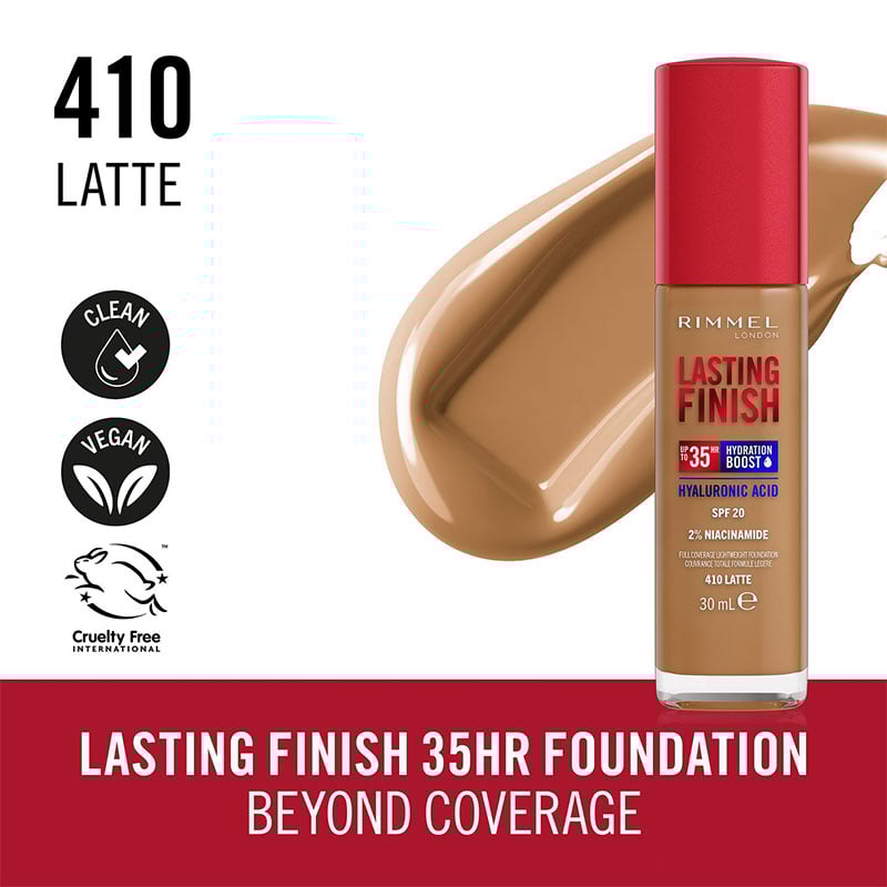 - Get unbeatable hydration and up to 35hr wear with Rimmel London Lasting Finish 35 Hour Foundation.