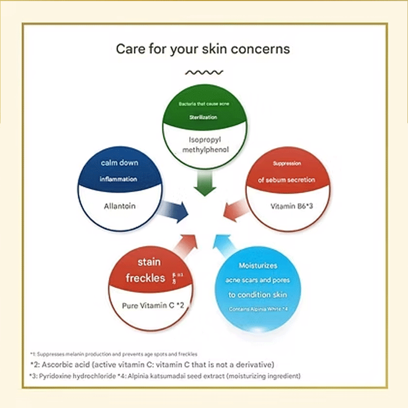 - A brightening vitamin C essence that absorbs deep into the skin surface with a unique formula.