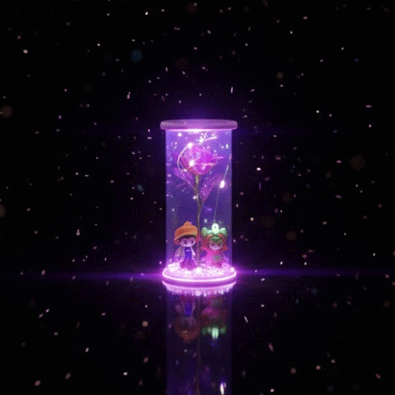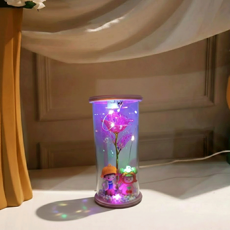 - Bring a touch of fairy-tale magic to your home with this Romantic Couple Lightning Rose - Pink. This whimsical decorative piece combines the timeless beauty of a blooming rose with the charm of a miniature world, creating a warm and dreamy atmosphere in any room.