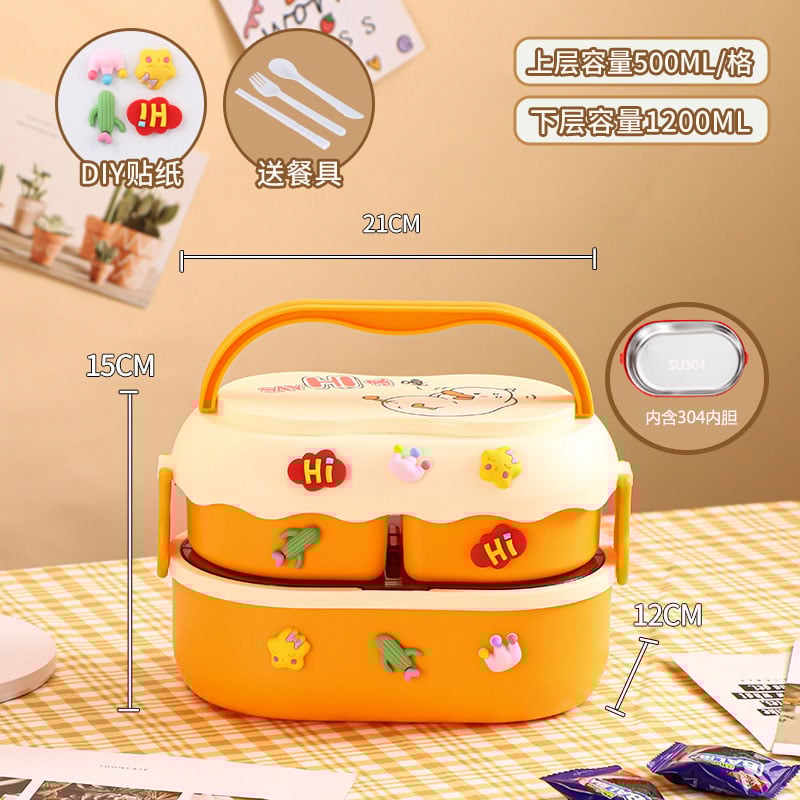 Say Hi Double-Layer Lunch Box With Handle - Orange